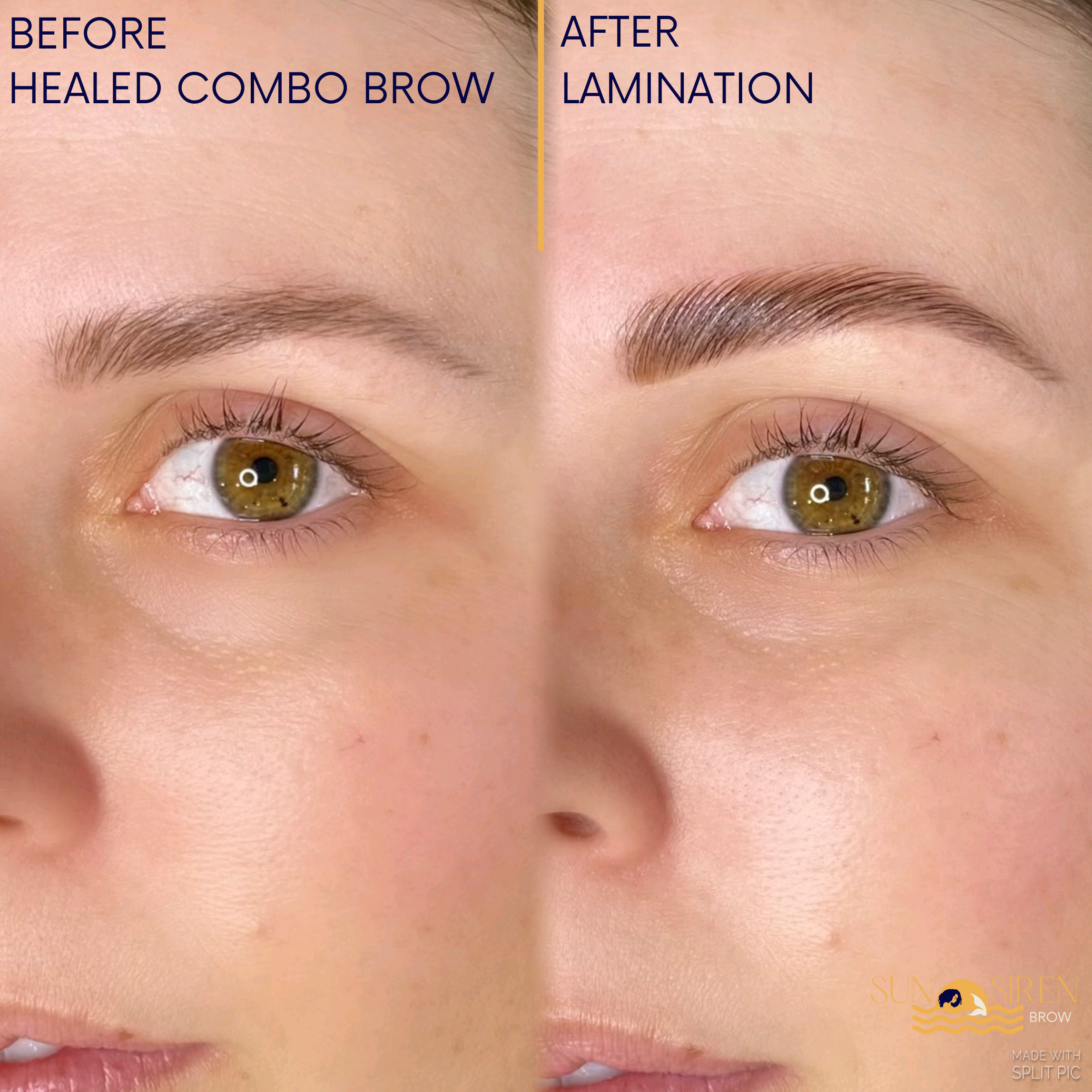 Image Left: Brow Lamination Before and After Lamination over Combo Brow