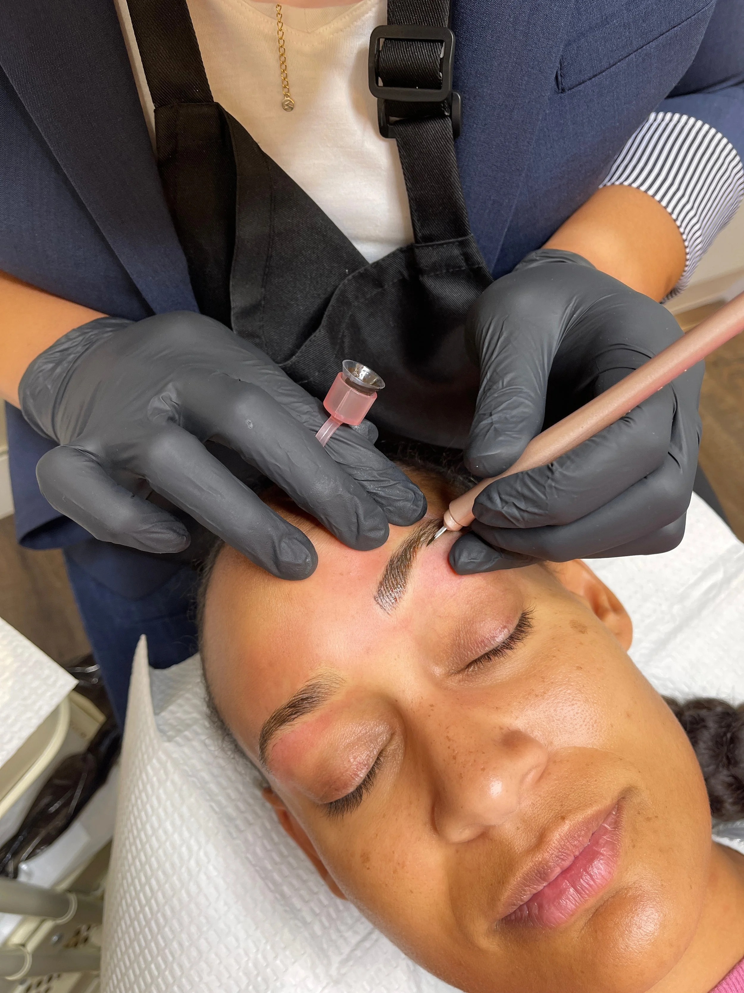 Why does technique matter? Well…besides a symmetrical, balanced design with hairstrokes resembling natural brow hairs… pressure, depth, and angle are important factors in artist technique. There are specific rules with creating hairstrokes with a microblade. For example, crossing over hairstrokes is a big no no. A skilled artist understands this and will adjust based on their client’s skin. An unskilled, poorly trained artist can cause irreversible damage to the skin. Ever did an online search for “Bad Microblading” or “Microblading Gone Wrong”? I know, the images hurt my heart too. Sadly, many of those cases would have to seek multiple rounds of laser or saline removal which can be quite costly. In the worst cases, even the most advanced tattoo removal options are not enough to completely reverse poor artist technique.